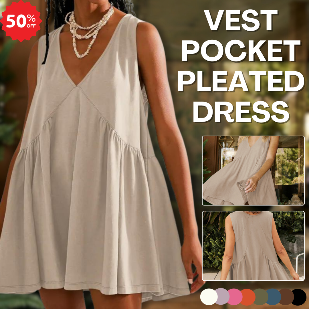 🔖LynnWear Women's Casual Vest Pocket Pleated Dress